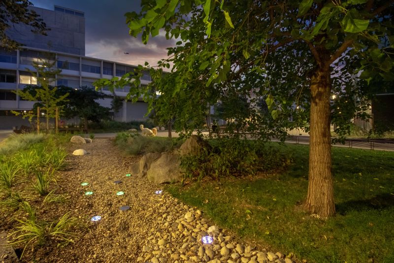 - Shaded Walking Loops – Discreet, ground-level fixtures guide walkers after dark while preserving roots, soil, and natural habitats.